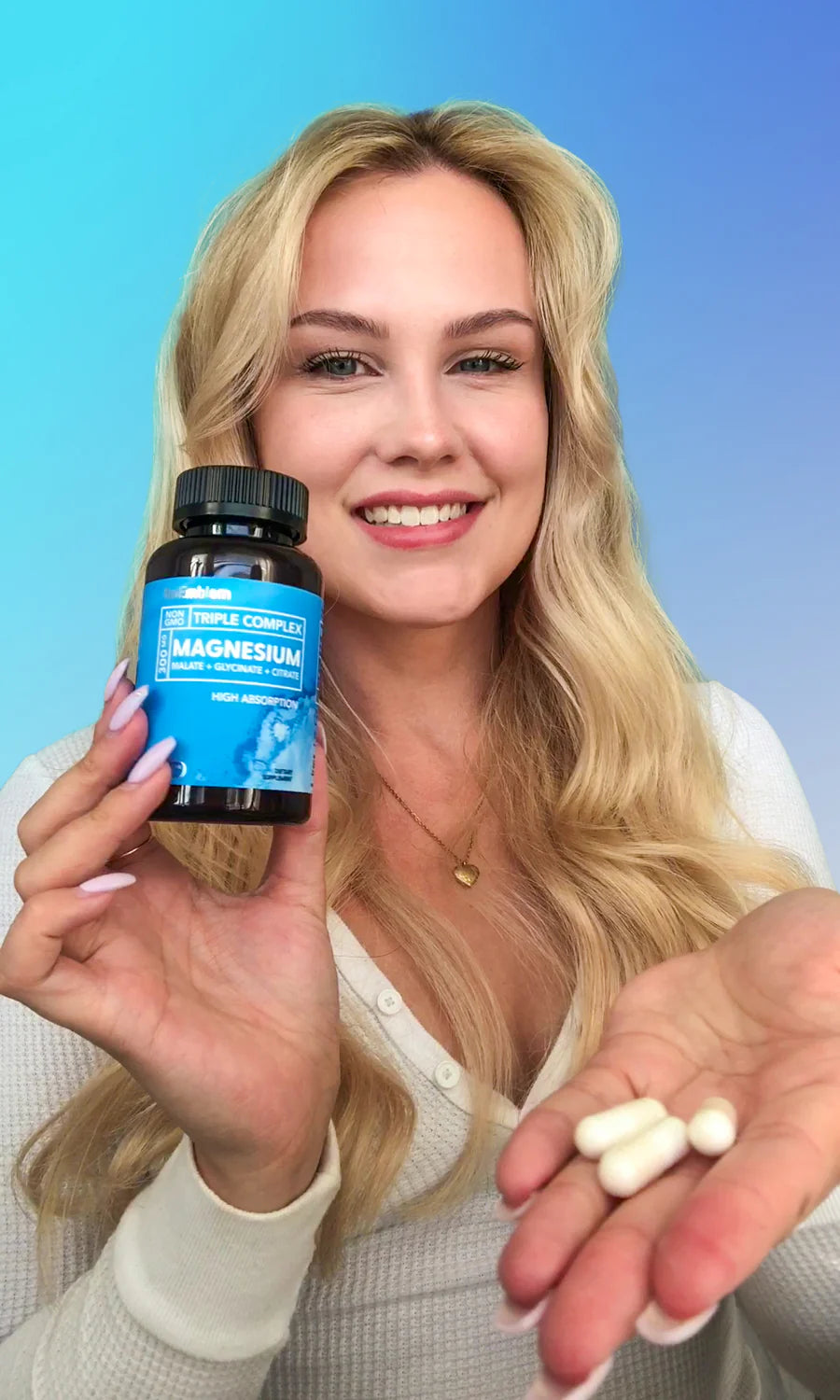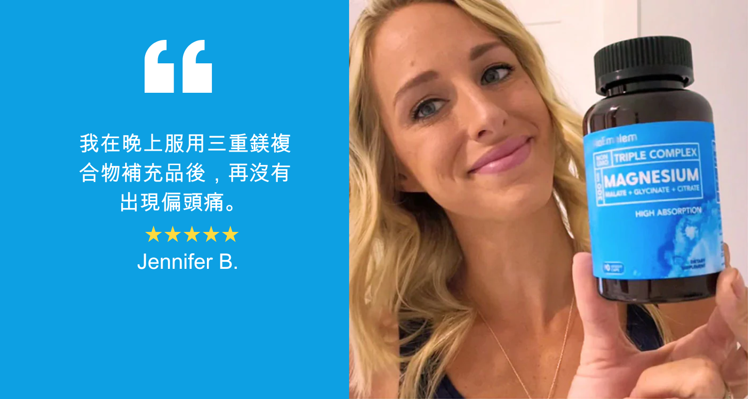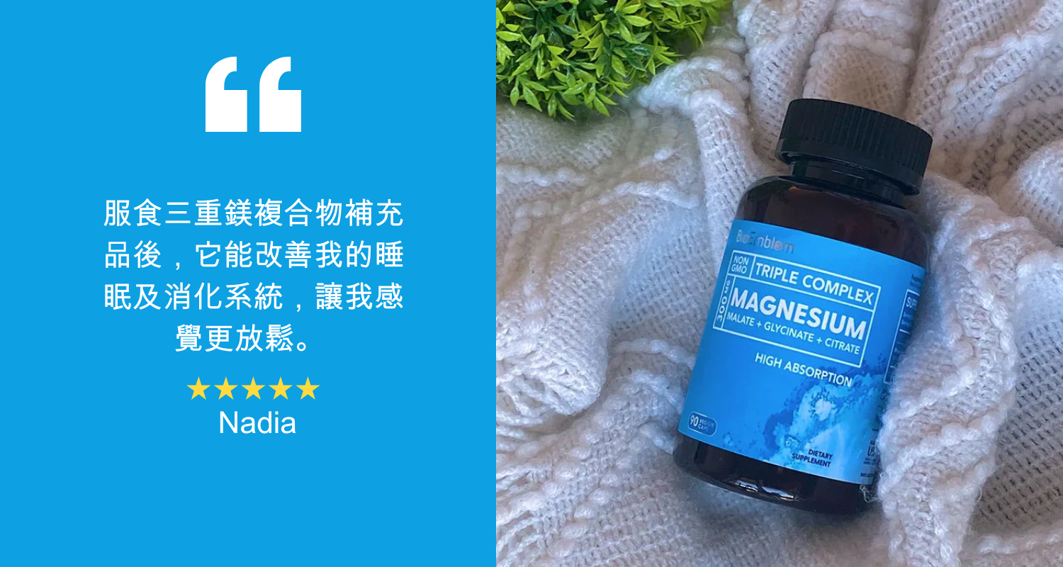 BioEmblem 特效三重鎂 蘊含甘氨酸鎂、檸檬酸鎂和蘋果酸鎂的混合物,被美國 Healthline 評為「最佳整體鎂補充品」。